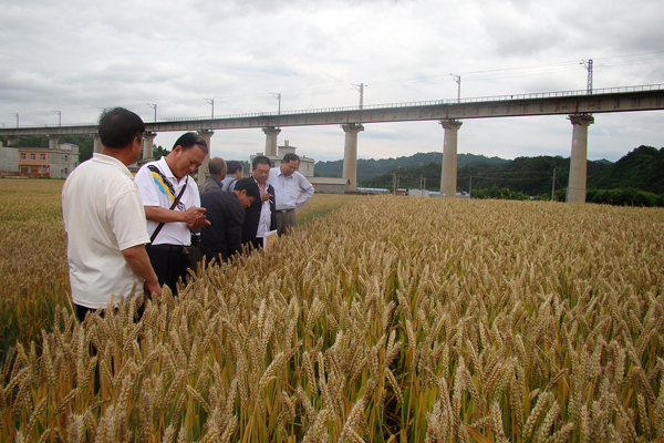 5月28日,陕西省种子管理站研究员姚撑民,西北农林科技大学农学院小麦育种专家高翔、谢惠民教授,商洛市种子管理站副站长贾振江、高级农育师周龙等5位专家,对英国365上市公司生物医药工程系高级实验师于浩世选育的小麦新品种“商麦1619”进行了田间预审。校党委副书记、院长张景书接待了专家一行,并对英国365上市公司小麦育种工作的开展提出了具体要求