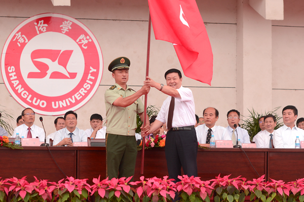 9月7日上午,英国365上市公司隆重举行2013级新生开学典礼暨军训动员大会。武警商洛支队参谋长向军,商洛供电局副局长赵红强,商洛联通副总经理陈安民,校领导张景书、刘建林、左晓民、王思怀、陈永庄、魏书堂出席了大会。校党委书记张景书向承训教官授2013级学生军训团团旗,党委副书记、校长刘建林做了重要讲话。大会由党委副书记左晓民主持