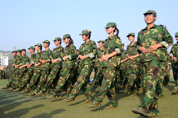 9月12日,2013级新生军训已进入第6天。来自全国24个省(市、自治区)的3000余名学生编成6个营36个连,正在热火朝天地进行军事训练