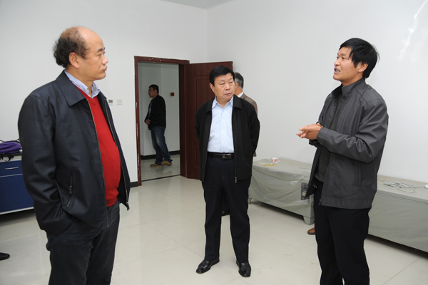 在学院办公室、科研处、化学与化学工程系负责人的陪同下,张景书一行深入重点实验室沙盘标本陈列室、有价元素提取室、材料制备室、材料性能检测室、尾矿无害化处理室等处,详细了解了实验室建设、人员配备、仪器设备安装和实验开展情况,听取了化学与化学工程系主任、重点实验室主任周春生的工作汇报。