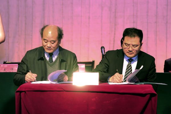刘建林代表学校与商洛供电局党委书记陈飞续签了校企合作协议,与商洛市邮政局局长王伟签订了校企合作协议。
