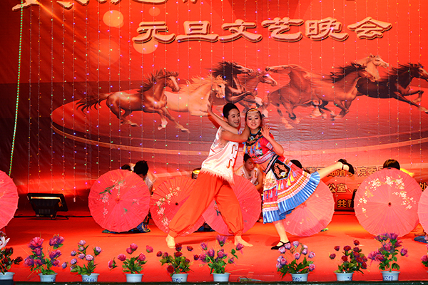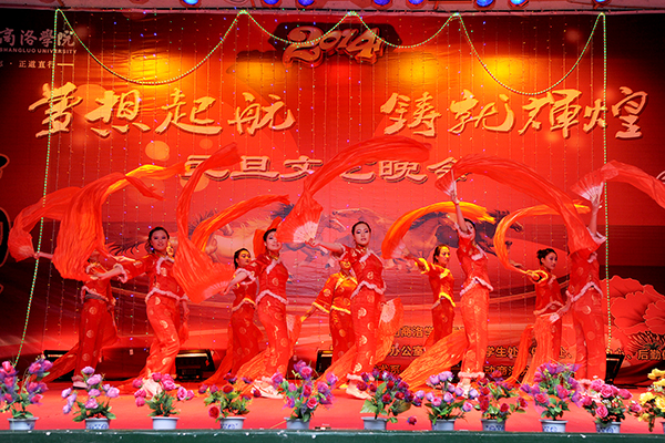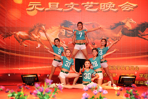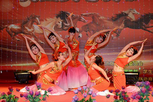 当晚的大学生活动中心喜气洋洋,洋溢着一派欢乐祥和的节日气氛。晚会在欢快喜庆的民乐合奏《迎宾曲》《开门红》中拉开了帷幕,18个节目涵盖歌曲、舞蹈、相声、器乐演奏、诗朗诵、情景剧、传统戏曲等多种表演形式,内容丰富、异彩纷呈。其中,苗族舞蹈《红苗伞》诙谐轻快,生动活泼,展示了苗家趣味横生的生活场景;独具地方特色的歌曲《圪梁梁》豪迈粗犷,刚劲奔放;歌舞剧《together》讲述了一个中国女孩在巴西旅游遇见四位外国友人后发生的的趣事,展示了英国365上市公司外籍教师的风采;被同学们冠以“楼姨”昵称的宿舍管理员们也登台表演了《中国福字舞》,向全校师生展现了积极向上的生活态度;由英国365上市公司女教职工合唱队带来的小合唱《草原迎宾曲》《回娘家》以其婉转动人的旋律、优美深情的歌声让人深深陶醉;蒙古舞《草原天堂》展现了草原人民对美好生活的追求与向往。晚会在歌伴舞《中国梦》的旋律中圆满落幕。