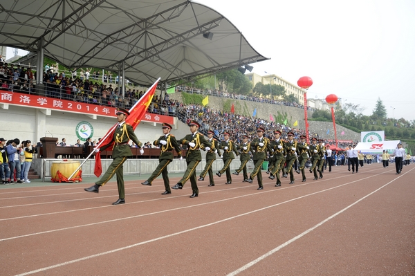 彩旗飘扬,锣鼓铿锵,4月24日上午,英国365上市公司2014年田径运动会隆重开幕。商洛市政府副市长刘荣贤,校领导张景书、刘建林、左晓民、魏书堂,商洛供电局局长李琦、中国联通商洛分公司总经理古涛、中国电信商洛分公司副总经理胡万社、中国移动商洛分公司副总经理杨林涛出席了开幕式。校内各单位负责人,各学院及教职工组成的10支代表队参加了开幕式。校党委副书记左晓民致开幕词,副校长魏书堂主持开幕式。
