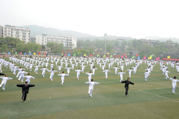 开幕式上,城乡规划与建筑工程学院的300名同学以饱满的热情表演了大型团体操《舞动青春,放飞梦想》,拉开了本次大型文体表演的序幕;人文社会科学学院的太极拳表演《太极神韵》刚柔相济,典雅大方;经济与管理学院240名青春学子带来的啦啦操《青春旋风》热情奔放,活力十足,为整场表演画上了圆满的句号。