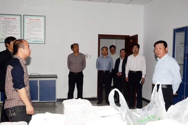 校领导深入重点实验室沙盘标本陈列室、有价元素提取室、材料制备室、材料性能检测室、尾矿无害化处理室等处,详细考察了实验室硬件设施建设、配备情况和项目研究工作开展进度。