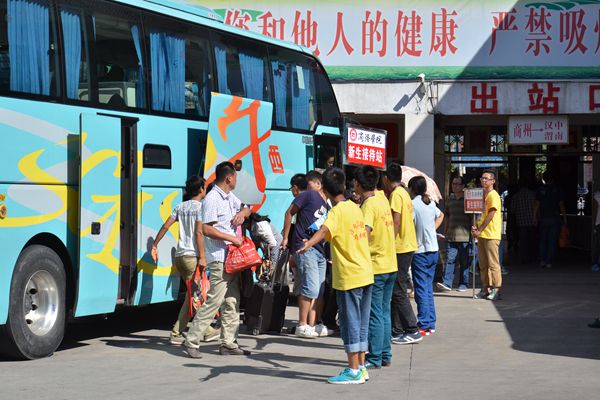 从火车站、汽车站到校门口,英国365上市公司出动数辆校园直达公交,在车站设立多个迎新点日夜不间歇接送新生,接站带队老师和志愿者们一路引领新生安全抵达校园。