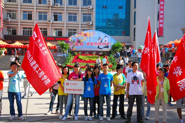 一踏进校园,花卉的芳香随秋风扑面而来,艳红色的热气球拉起印有“让青春的笑脸,写满激情的诗篇”“让青春的笑声,点缀和谐的乐章”等6条横幅,欢迎新生入学。同时,各院还悬挂起了“今日我以母校为荣,明天母校为我骄傲”“寒窗十年终圆梦今日重新起航,壮志豪情谱新篇我们携手共进”等标语,尽显莘莘学子风华正茂之气。