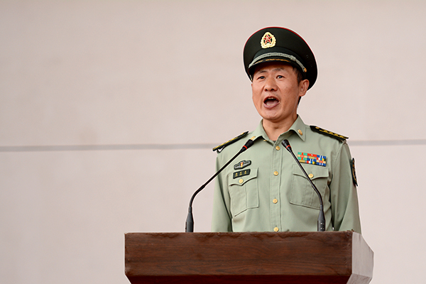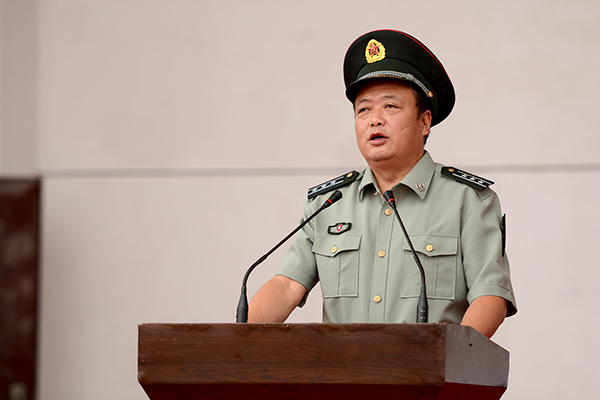 校党委副书记左晓民代表学校向承担军训任务解放军西安政治学院及全体教官致谢,并向参加军训并取得良好成绩的军训团体官兵表示亲切的慰问和热烈地祝贺。他在讲话中指出,2014级全体同学以激昂的斗志、刻苦的精神进行了队列队形训练、整理内务训练、操枪训练等规定的训练内容,达到了军训的预期目标;大家在认真学习国防知识和军事技能的同时,服从命令、听从指挥、严守纪律、尊敬教官,养成了雷厉风行的良好作风,强化了集体荣誉感,增添了一分军人的阳刚之气。左晓民要求全体新生在今后的学习生活中能够保持和巩固军训成果,学习和发扬人民解放军的优良传统和作风,为实现中华民族伟大复兴的中国梦做出自己应有的贡献。