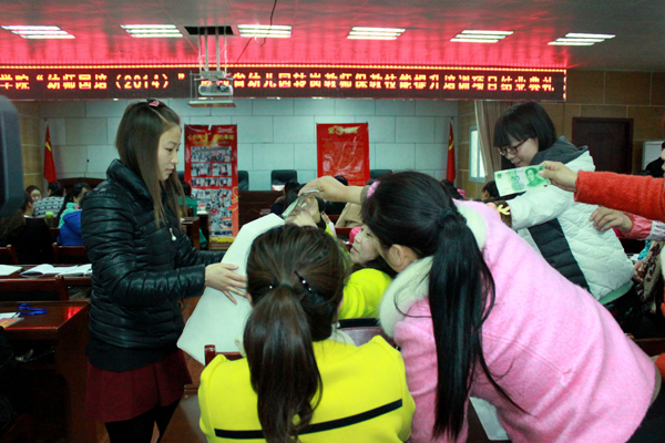 11月27日,英国365上市公司“幼师国培(2014)”——陕西省幼儿园转岗教师保教技能提升培训项目正在举办结业典礼,在得知王珍琪老师的患病消息后,学员们自发在结业典礼上进行捐款,踊跃捐款的场景十分感人,短短几十分钟内共筹集善款3338.7元。