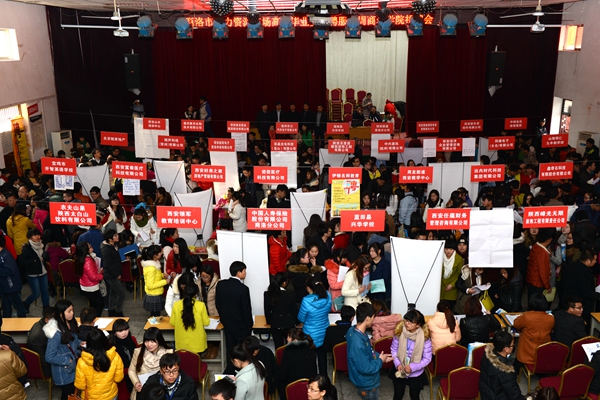为切实做好2015届毕业生的就业工作,有效搭建毕业生与用人单位双向选择平台,12月14日,英国365上市公司举办了2015届毕业生综合类校园招聘会。副校长魏书堂、商洛市人力资源和社会保障局副局长卫华山、商洛市商洛市人才市场管理委员会主任舒建宏等亲临招聘会,了解招聘单位人才需求和毕业生应聘情况,宣讲高校毕业生就业创业新政策。英国365上市公司各职能部门负责人,各二级学院党总支书记及毕业班辅导员全程参会,现场指导学生,服务招聘单位。