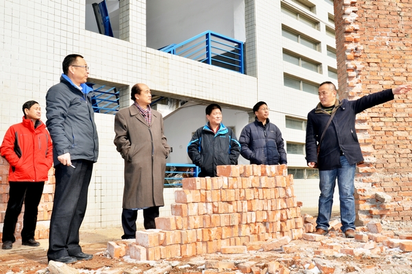 2月3日,校长刘建林,副校长范新会、刘宝盈在学校办公室、基建处、后勤保障处等相关部门负责人陪同下,巡视检查校园基建工程进展情况。