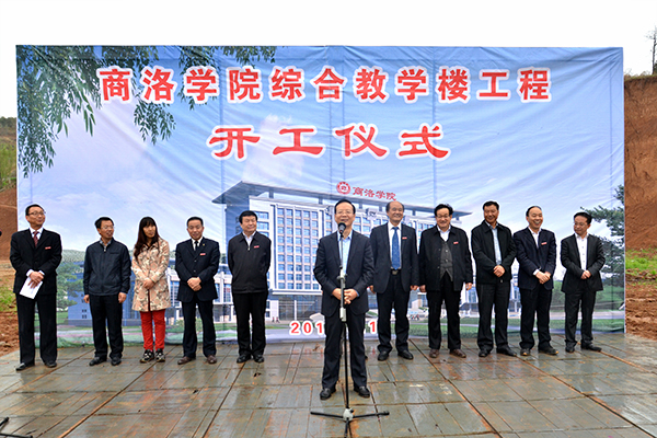 陕西省政府副秘书长、省机关事务局局长孟军,商洛市人民政府副市长刘荣贤,校党委书记张景书、校长刘建林,商洛市文广新局副局长南书堂,校纪委书记王思怀、副校长魏书堂、党委副书记彭虎军、副校长刘宝盈,中国对外建设有限公司西北区域总部常务副总经理王刚、总经济师葛芙霞、总会计师陈玉生等出席开工仪式。各部门负责人、学生代表、施工企业人员参加了活动。开工仪式由刘宝盈主持。