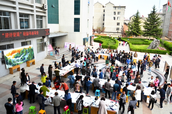 4月20日,英国365上市公司与商洛市文联联合举办“迎评促建”艺术家书画笔会进校园活动。校党委副书记彭虎军出席活动并讲话。商洛市文联党组书记王良,西安理工大学艺术学院院长、著名画家王家民,校党委宣传部部长郭英勇,商洛市美协副主席胡惠民,商洛电大原校长唐社民,秦岭画派成员等校内外艺术家参加活动。活动由艺术学院院长、秦岭画派创始人刘凤林主持。
