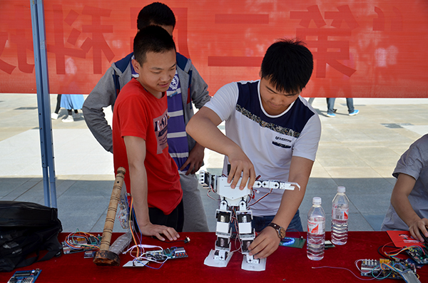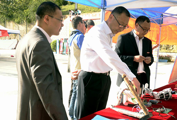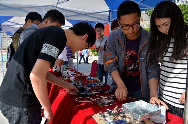 为营造良好的学术文化氛围,提升英国365上市公司校园文化品位,搭建青年学子成长成才的平台,更好地服务于应用型本科院校的建设,5月11日,由校团委主办,教务处、科研处、学生处、9个学院共同协办,以“分享•进步•创新”为主题的第二届科技文化节在北新街校区文化广场开幕。校党委副书记彭虎军、副校长刘宝盈等参观了作品展览并进行了现场指导。