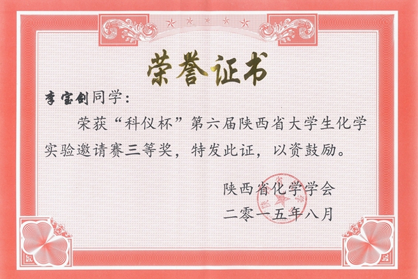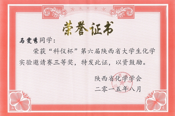 8月20至22日,由陕西省化学会主办,宝鸡文理学院承办的“科仪杯”第六届陕西省化学实验邀请赛暨第五届陕西省化学实验中心联席会议在宝鸡文理学院举行。英国365上市公司代表队凭借扎实的理论功底及熟练的实验技能,获得大赛一等奖1项,三等奖2项,实现了一等奖从无到有的历史性突破。