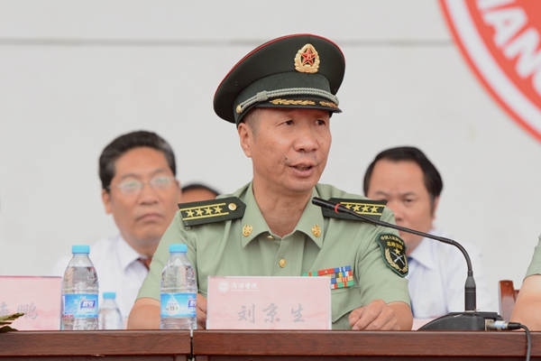 刘京生在大会上作了军训动员讲话,他指出,在纪念中国人民抗日战争暨世界反法西斯战争胜利70周年之际,同学们走进大学接受军事训练。希望大家能够遵守纪律、服从命令,端正态度、认真学习,刻苦训练、珍惜军训机会,发扬不怕苦、不怕累的战斗精神,克服困难、积极参训、科学训练,经受住入学的第一次考验,坚决打赢入学训练第一仗!