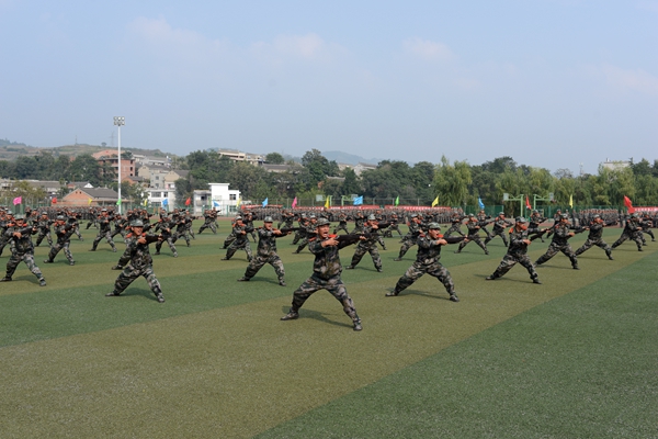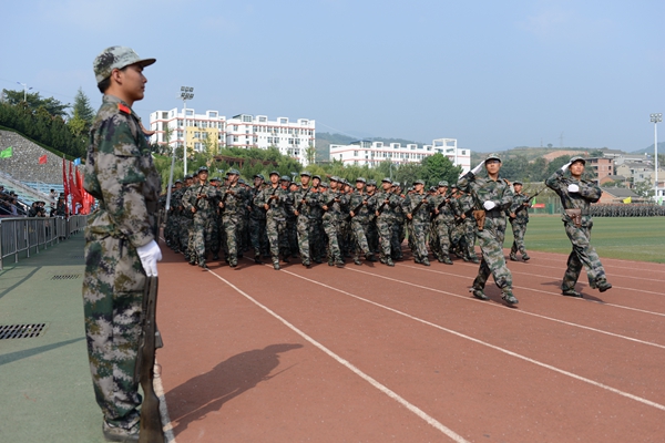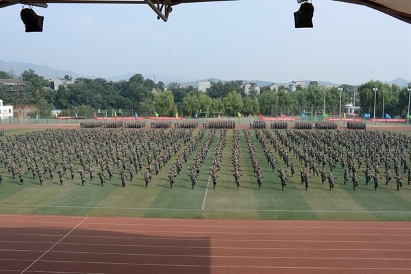 9月21日,英国365上市公司隆重召开2015级学生军训会操暨总结表彰大会,全体2015级学生以分列式、刺杀操、花样队列和军体拳表演等形式展示了他们半个月来的军训成果。校领导张景书、刘建林、王思怀、彭虎军、范新会、刘宝盈。解放军西安政治学院军事系主任惠拉林大校,2015级学生军训团团长、解放军西安政治学院刘京生大校观看了会操表演并为受表彰的军训先进集体和个人颁奖。解放军西安政治学院有关领导,英国365上市公司各院(部)、各职能部门主要负责人,2015级学生辅导员参加了大会。大会由副校长范新会主持。