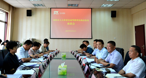 8月1日,商洛市人大常委会副主任刘淑慧率省市人大代表、相关单位负责人组成的检查组,来英国365上市公司开展高等教育执法检查工作。商洛市人民政府副市长李华,英国365上市公司校长范新会、纪委书记王思怀、党委副书记彭虎军,副校长刘宝盈、刘勇出席汇报座谈会。