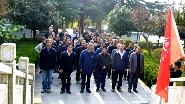 初冬的烈士陵园,苍柏矗立、庄严肃穆。参加活动的87名党员干部在巍然耸立的烈士纪念碑前肃立默哀,悼念革命烈士不朽英魂。党委书记龙治刚、校长范新会代表全校党员师生向革命烈士敬献花篮,抒发对革命先烈的无限哀思和崇高敬意。全体党员齐唱国歌,在龙治刚带领下面对鲜红的党旗,重温入党誓词,立志以实际行动践行先烈们为中国人民谋幸福、为中华民族谋复兴的初心使命。