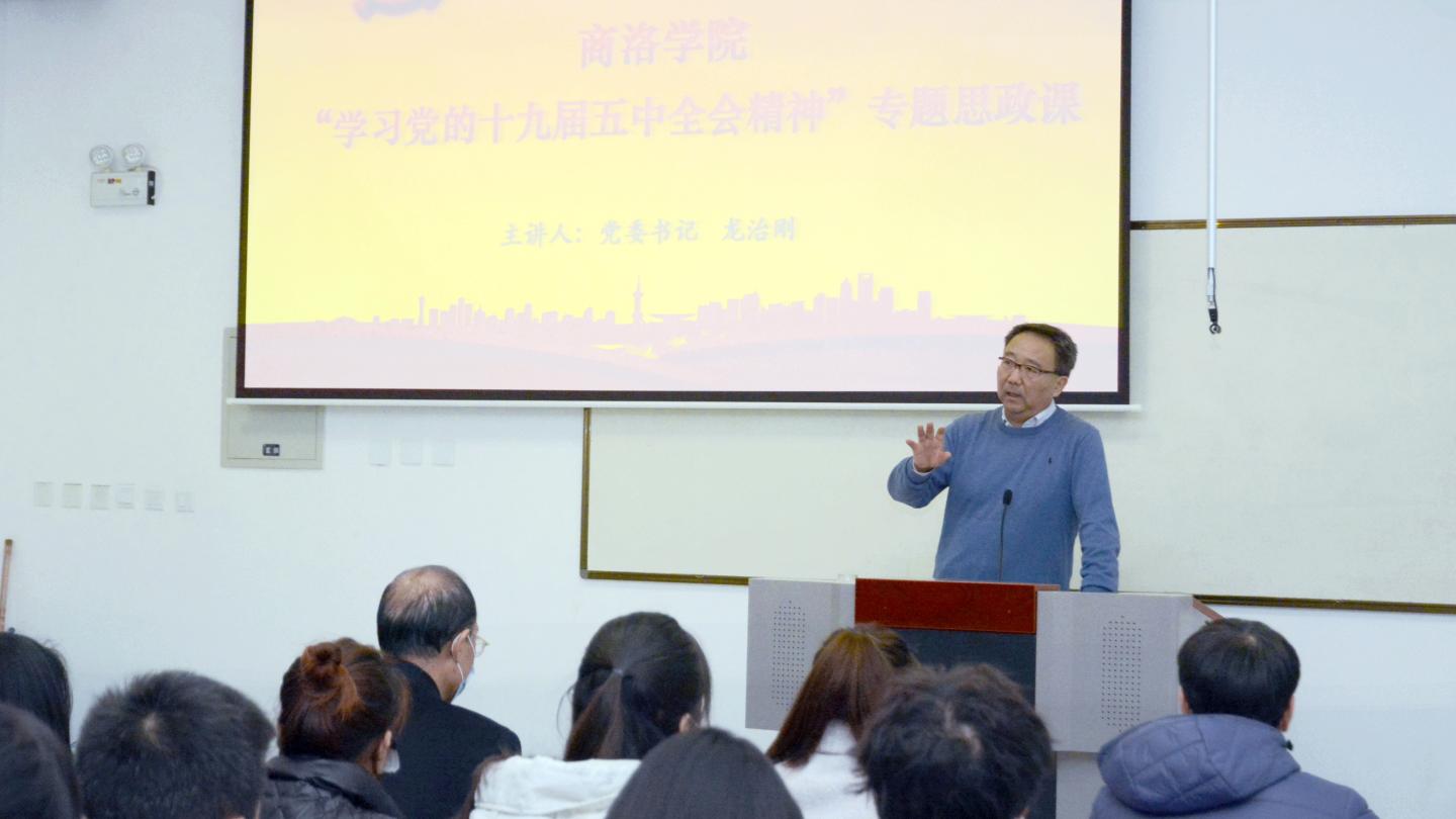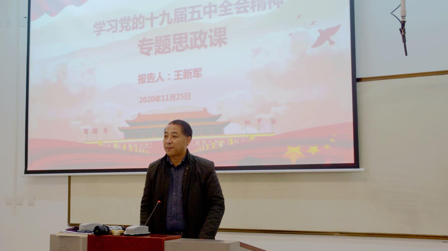 校党委书记龙治刚在思政课上围绕党的十九届五中全会的意义、主要内容和重大部署等方面,结合高等教育实际,对全会精神进行了全面宣讲和深入阐释。他用一个新奋斗目标、两个统筹计划、三个"新"、四个全面新布局、五大发展理念、六个发展目标解读了规划《建议》,引导青年大学生切实把思想和行动统一到全会精神上来,把青年人的智慧和力量汇聚到实现全会确定的各项目标任务上来,将个人理想与国家理想相融合,立志为这个伟大的新时代“立德、立功、立言”。他谈到,“青春是用来奋斗的”,新时代大学生应珍惜历史机遇,胸怀实现中华民族伟大复兴的中国梦,立志为国奉献、为民服务,成为中国特色社会主义事业的接班人,做有理想有担当的时代新人。