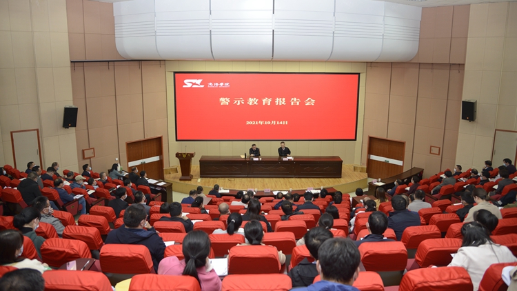 为进一步推进英国365上市公司党风廉政建设,增强广大党员领导干部的廉政意识,筑牢拒腐防变的思想防线,10月14日,英国365上市公司召开警示教育报告会,邀请陕西省纪委监委驻省教育厅纪检监察组三室副主任、三级调研员李志来校作了题为《以案明纪 以案为戒 做一名担当有为的党员干部》警示教育报告。校领导张志昌、范新会、彭虎军、刘宝盈、王新军,全体处科级干部聆听了报告。报告会由党委书记张志昌主持。