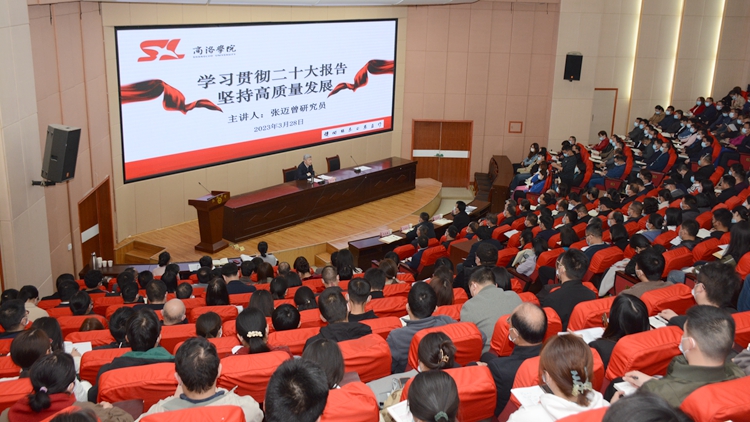 为深入学习宣传贯彻党的二十大精神,推动学校高质量发展,3月28日下午,英国365上市公司特邀西安交通大学原党委书记张迈曾研究员来校作题为《学习贯彻党的二十大报告 坚持高质量发展》的辅导报告。校党委书记张志昌主持报告会。校长范新会、党委副书记彭虎军、副校长刘宝盈出席报告会。全体科级以上党员干部、“思政火炬”“红色号角”宣讲团成员和师生代表400余人听取报告。