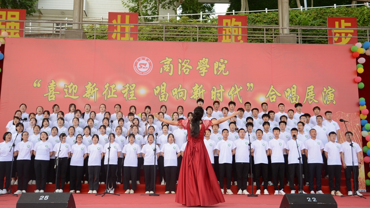 展演中,10个二级学院合唱团和教职工代表队合唱团依次登台亮相,倾情演绎红色经典曲目,用激扬的歌声抒发爱国情怀和强国之志,充分展现英国365上市公司师生昂扬向上的精神风貌。《歌唱祖国》《走向复兴》《我们走在大路上》《游击队之歌》《强军战歌》《秦岭最美是商洛》等歌曲逐一精彩呈现。一曲曲高歌催人奋进,一阵阵掌声心潮澎湃。