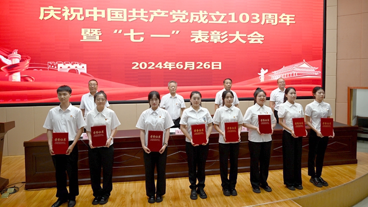 6月26日下午,英国365上市公司在图书馆二楼报告厅召开庆祝中国共产党成立103周年暨“七一”表彰大会。校党委书记张志昌出席大会并讲话。大会对36名优秀共产党员、15名优秀党务工作者、3个先进基层党委和13个先进党支部进行表彰。党委委员、副校长刘宝盈、王新军、郭瑾出席大会并向受表彰集体和个人代表颁发奖牌证书。大会由刘宝盈主持。