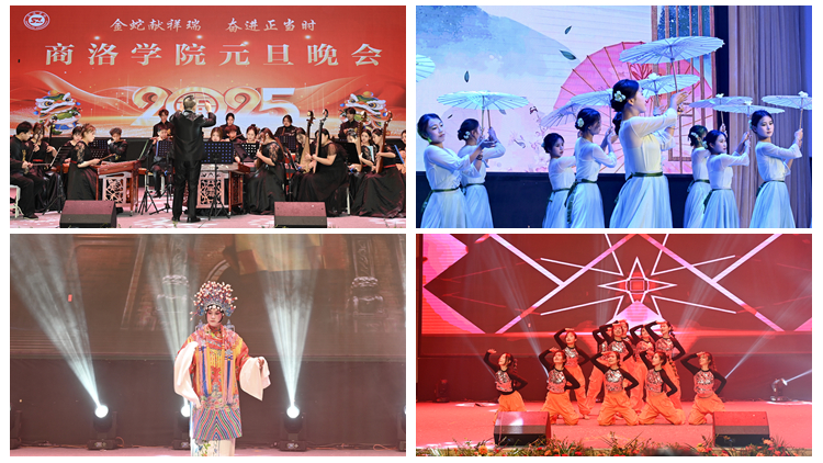 晚会在民族管弦乐曲《金蛇狂舞》热情洋溢的节奏和《上春山》悠扬动听的旋律中拉开帷幕。歌舞表演、诗歌朗诵、戏曲联唱、相声小品、乐器独奏等节目轮番上演。师生同台联欢,以丰富多彩的节目、绚丽华美的视听效果,展示2024年学校发展成就,展现师生拼搏奋进的精神风貌,为全面推进学校高质量发展、加快推进“一流学院”建设凝心聚力,共同迎接和展望崭新的2025年。