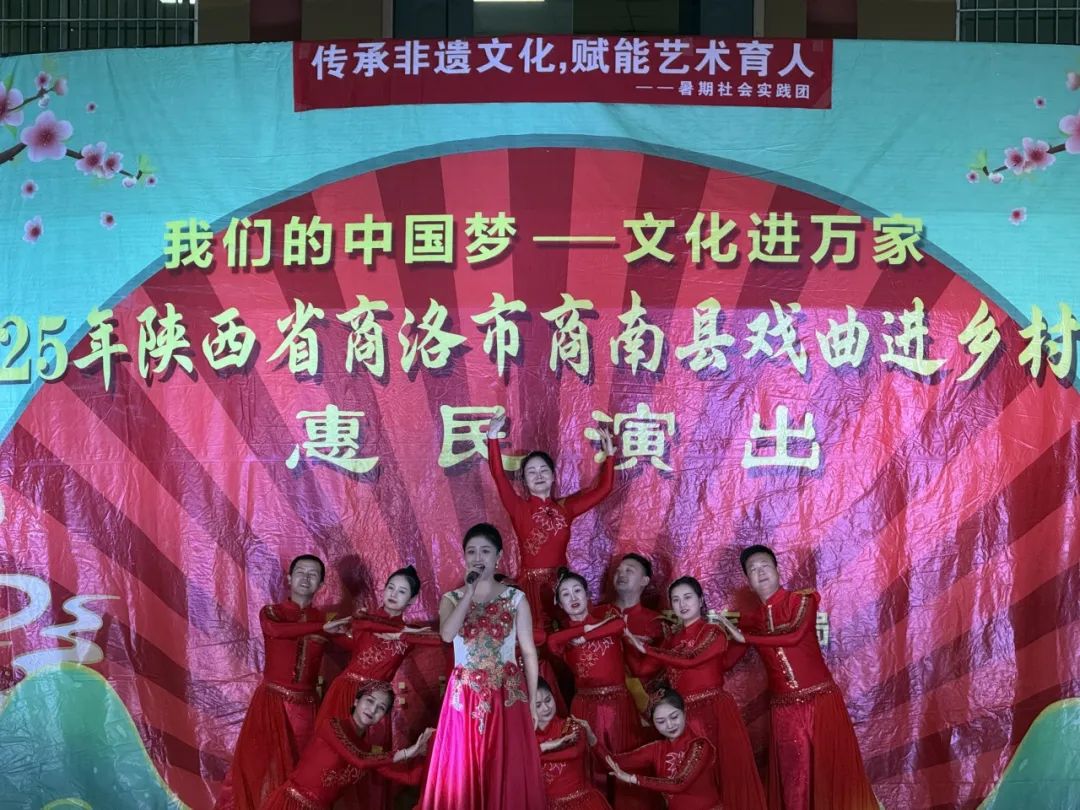 ——文化展演“惠民生”。艺术学院“传承非遗文化,赋能艺术育人”暑期社会实践团赴商南县富水镇桑树村等地,与县剧团专业演员联袂登台,为当地村民献上“戏曲进乡村”文化惠民演出,为乡村文化振兴注入青春动能。
