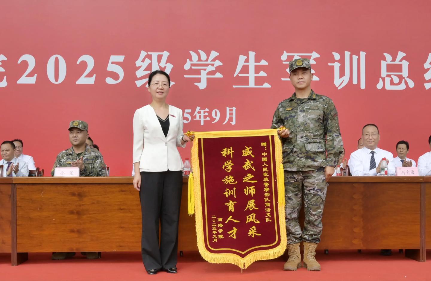 权雅宁寄语全体新生,要厚植家国情怀,坚定报国之志,主动学习国防知识,增强国家安全意识,以赤诚之心践行报国使命,让青春之花绽放在祖国最需要的地方。要坚持知行合一,练就过硬本领,既要把专业核心知识学深学透,又要主动打破学科壁垒,勇于创新实践,在实践锻炼的“练兵场”里提高发现问题、解决问题的“硬核”能力。要锤炼坚定意志,勇敢面对挑战,发扬军训中锤炼出的不放弃、不怕苦、不服输的精神,以健康的身心和饱满的热情迎接每一天的学习生活。