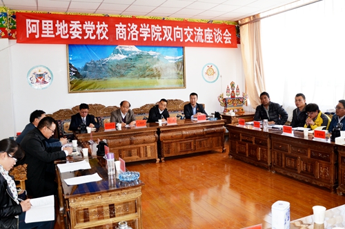 刘建林一行与中共西藏阿里地委党校干部职工进行座谈交流,并代表学校向阿里地委党校资助5万元,用于支持该校学科专业建设。西藏阿里地委委员、行署副专员王彪,阿里地委党校常务副校长白玛多吉出席座谈会。座谈会由阿里地委党校副校长郭运良主持。