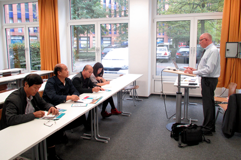 在德国柏林应用科技大学,刘建林一行先后前往两个分校区,分别与Hoffjann教授和Kammasch教授在应用型人才培养过程中的教学质量管理的模式、管理质量管理的模式、工程教育及其教学法、应用型教师的培养等方面开展了深入交流和探讨,了解了《博洛尼亚宣言》后欧洲高等教育体系的改革和建设成果。