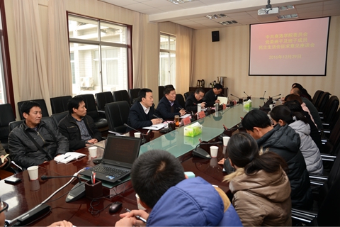 12月29日至30日,校党委副书记、副校长范新会主持召开了二级教学单位代表、职能部门代表及博士代表三个座谈会,征求广大教职员工对党委领导班子和班子成员的意见建议,为召开专题民主生活会做准备。纪委书记王思怀,党委副书记彭虎军,党委委员、干部人事处处长高荣发出席座谈会。各二级教学单位教师代表、职能部门职工代表和博士代表共70余人参加了座谈。
