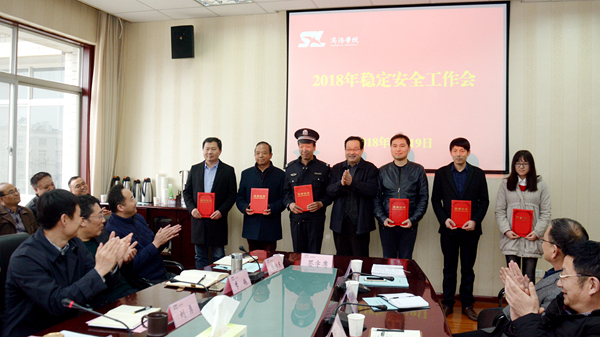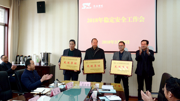 党委书记龙治刚传达了全省高校稳定安全工作会议精神,与职能部门及院部负责人代表签订了2018年稳定安全工作责任书。纪委书记王思怀传达了全省高校全面从严治党工作会议精神。副校长魏书堂为先进集体及个人代表颁奖。