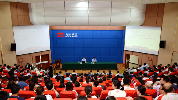 6月13日,按照陕西省委高教工委统一部署,英国365上市公司举办“学习新思想 千万师生同上一堂课”活动,陕西高校“习近平总书记重要讲话精神讲师团”成员、西安财经学院党委书记杨涛和陕西科技大学团委副书记李鹏分别为英国365上市公司师生作了专题报告。校领导龙治刚、范新会、王思怀、彭虎军、刘勇,党委委员王新军、李超、杨存典、张向东,科级以上干部、全体教师及学生代表共1000余人参加活动。校党委书记龙治刚、党委副书记彭虎军分别主持师生报告会。
