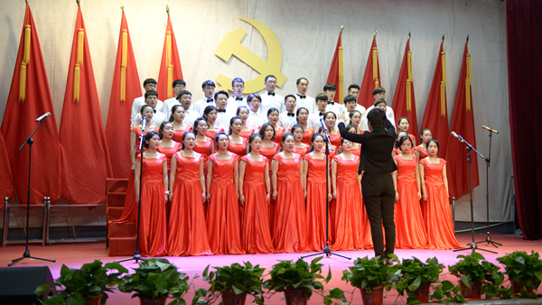 艺术学院教师赵超、易伶演唱了歌曲《不忘初心》,王娜娜演唱了歌曲《唱支山歌给党听》,用真挚的情感和动听的歌声表达对党和祖国的忠诚和热爱,为党的生日送上美好的祝福。与会师生还共同观看了视频《窑洞里的读书人》,重温了习近平总书记在梁家河热爱读书、追求真理的青春岁月。
