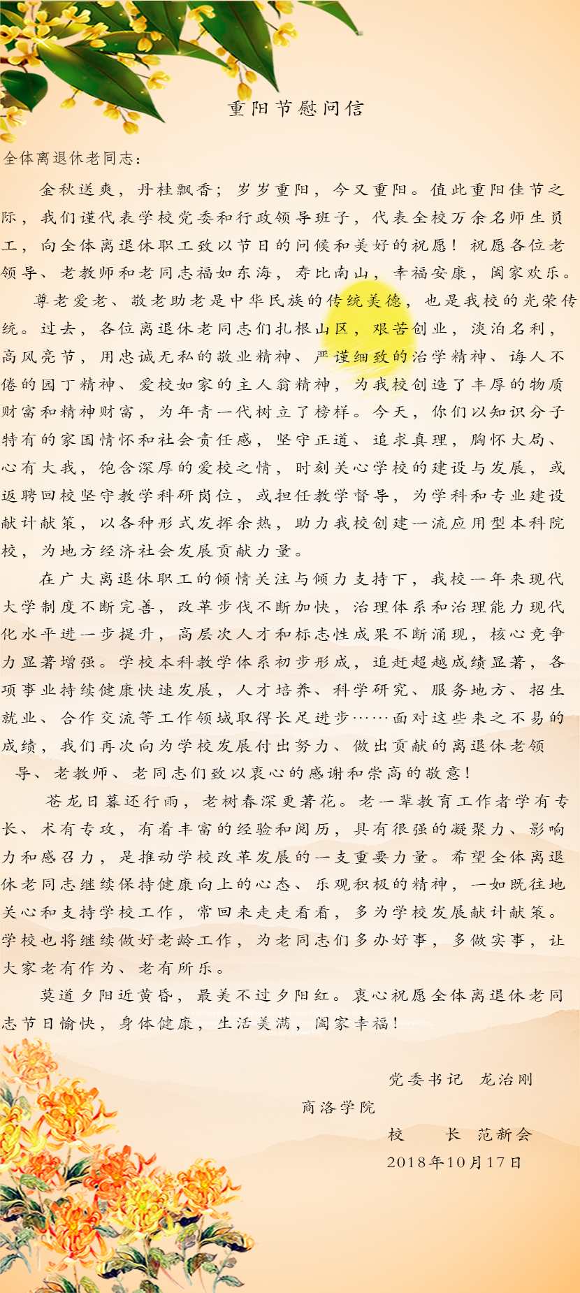 重阳节慰问信