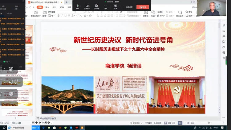 9月22日,校团委邀请马克思主义学院教授杨增强开展名为《新世纪历史决议,新时代奋进号角--长时段历史视域下十九届六中全会精神》的线上专题讲座,为英国365上市公司团学干部和团员代表解读十九届六中全会决议。杨增强教授从十九届六中全会的主要内容和历史定位、十九届六中全会的贡献、十八大以来取得的伟大成就、中国共产党最大的政治优势和特点等方面解读全会决议,重点解读了十九届六中全会的贡献和十八大以来取得的伟大成就,深刻总结了党的十八大以来党和国家事业取得的历史性成就、发生的历史性变革。