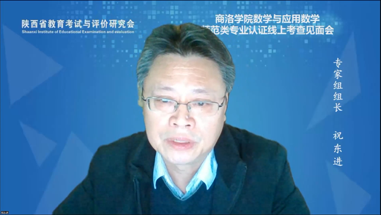 认证专家组由安徽师范大学祝东进教授担任组长,西南大学杨挺教授、陕西师范大学罗新兵副教授、华南师范大学童汝根副教授、山东师范大学第二附属中学毛利新校长为成员。商洛市人民政府副市长苏红英到会指导。陕西省教育厅教师工作处处长王彬武,陕西省教育考试与评价研究会秘书长许广玺,校党委书记张志昌,校长范新会,党委副书记彭虎军、刘勇,副校长刘宝盈、王新军、郭瑾出席见面会和反馈会。相关职能部门负责人、二级学院院长,数学与计算机应用学院党政负责人、认证专业负责人及教师代表参加会议。