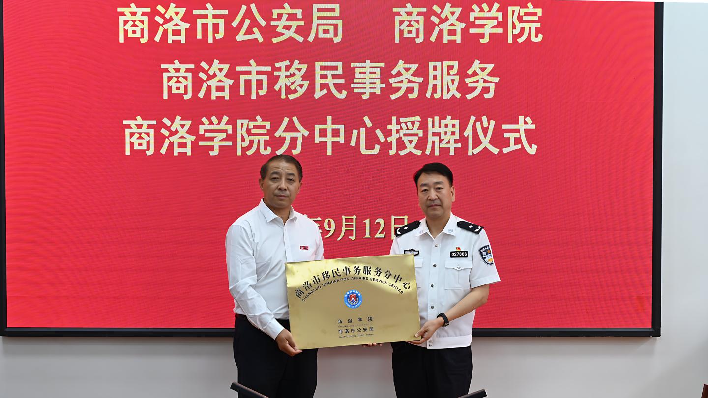 仪式上,柳礼群代表商洛市公安局为商洛市移民事务服务365公司分中心授牌,王新军代表学校接牌。