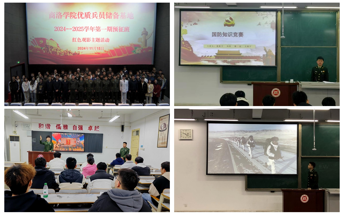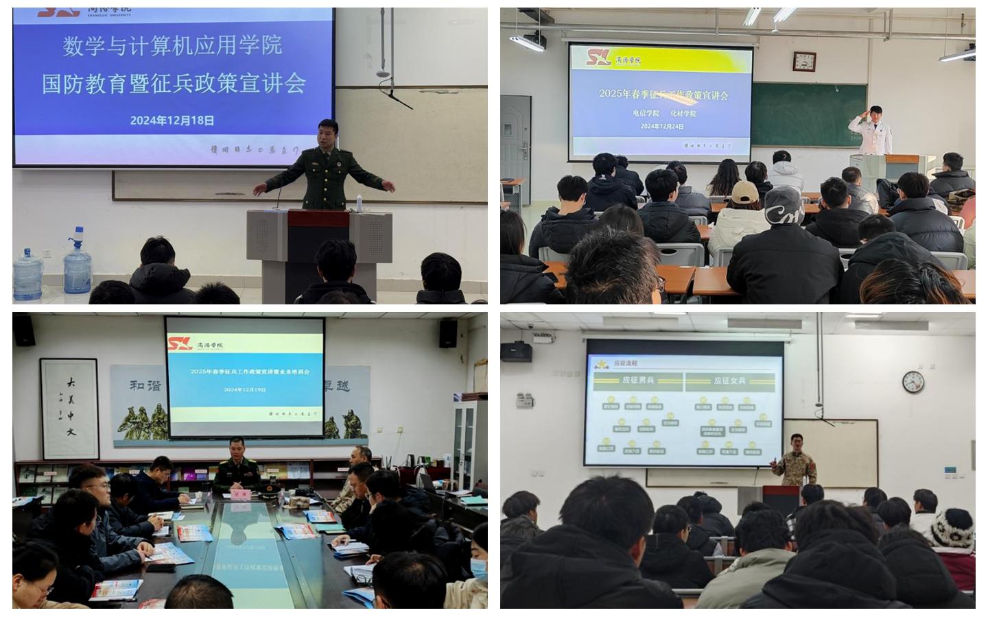 人民武装部面向10个二级学院策划开展了征兵工作进学院系列宣讲活动。在宣讲会现场,退役复学大学生们激情满怀的分享军旅生涯,从坚守岗位的平凡职责到守卫边疆的神圣使命,尽显军人担当。他们用亲身经历点燃了同学们的参军热情。生动的讲述、珍贵的照片与视频,有加深了同学们对军营生活的憧憬与向往。人民武装部教师张哲从入伍优待政策、参军入伍要求、应征入伍流程简介三个方面就征兵工作有关政策进行了宣讲,帮助同学们算好“政治账”“成长账”“经济账”。他表示,参军入伍不仅有利于锻炼自己、磨练意志,也是自身未来发展规划的重要选择之一,他鼓励同学们积极携笔从戎、参军入伍,为中国梦、强军梦贡献自己的青春力量。