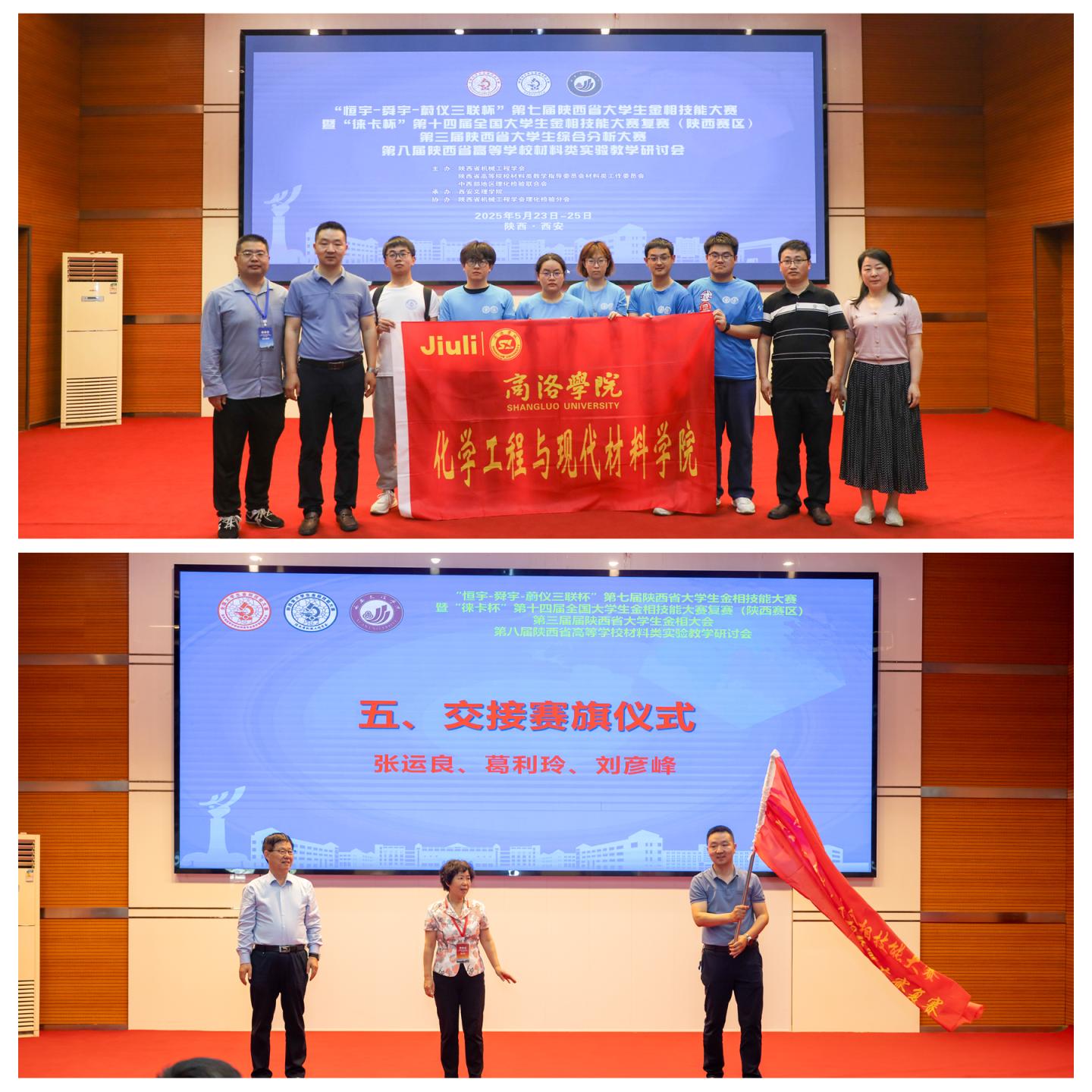 2026年,陕西省第八届大学生金相技能大赛将由英国365上市公司承办。大赛闭幕式上,化材学院副院长刘彦峰代表学校完成赛旗交接仪式。