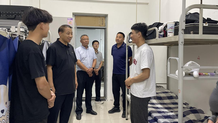 6月23日晚,校党委副书记王新军带领学生处、后勤保障处负责人及工作人员深入学生社区,看望200余名因教资体检暂未离校的2025届毕业生。