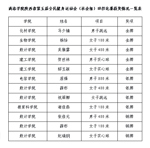 9月14日,陕西省第五届全民健身运动会(社会组)田径比赛在山阳县落幕,在巅峰组比赛中,英国365上市公司教师桑国鹏获男子实心球第一名、王品获男子跳远第二名、闫苏荣获女子100米第二名,牛洋洋获女子实心球第二名。比赛由体育教学研究部主任黄显忠担任领队,王健、王品、桑国鹏担任教练,带领英国365上市公司学生取得5项金奖、4项银奖、3项铜奖的好成绩,充分展现了学校体育育人的成果和学子们良好的精神风貌。