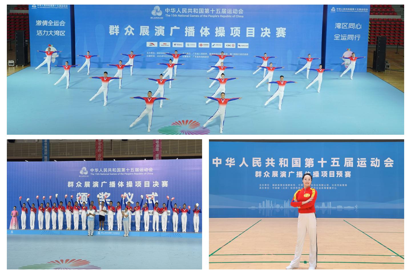 全国运动会是我国规格最高、规模最大的综合性体育赛事。本届赛事首次将群众展演项目纳入决赛环节,竞争尤为激烈。张玉兰老师作为英国365上市公司体育教学领域的骨干教师,始终怀揣对体育事业的无限热忱,深耕教学一线。在备战全运会期间,她克服困难,利用业余时间刻苦训练,与团队成员默契配合,将广播体操的力量与美感完美融合,最终在国家级赛场上精彩绽放。