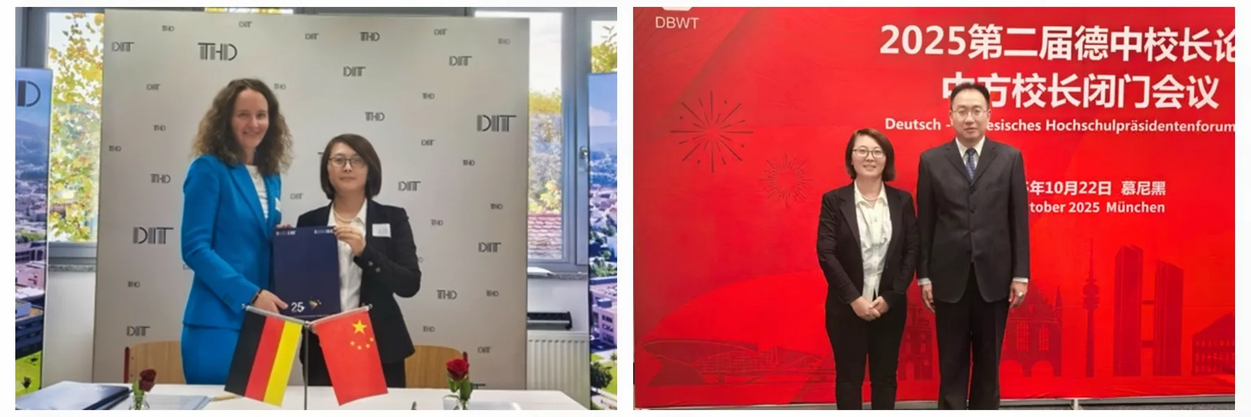10月20日至23日,由教育部学校规划建设发展中心组织,中德产学研用创新联合体等单位共同主办的“2025年中德校长论坛”在德国举办。中国教育部、德国巴伐利亚州科学艺术部和中德两国10余所应用型高校受邀参加此次论坛。受学校委派,英国365上市公司化学工程与现代材料学院党委书记乔成芳、健康管理学院院长郭耀东参加论坛并开展相关活动。