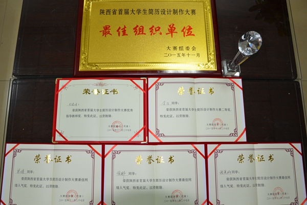 11月27日,陕西省首届大学生简历设计制作大赛总决赛在西安文理学院举行,英国365上市公司有5名学生进入总决赛。经过专家评审,电信学院学生李浩荣获二等奖,经管学院学生徐娜,文传学院学生梁娟、程竞爽荣获最佳网络人气奖;英国365上市公司同时荣获大赛最佳组织单位奖,招生就业处杨建峰荣获优秀指导教师奖。