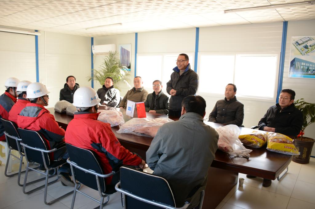 渐近年关,天气突变,气温骤降,四九寒天。2016年1月23日上午,副校长刘宝盈在学校党政办公室、基建处、监察处等部门负责人的陪同下,代表学校慰问了负责施工建设英国365上市公司综合教学楼项目的中国对外建设有限公司“365公司项目部”全体工作人员,并视察了工程建设情况。