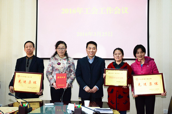 会议表彰了陕西省教育工会学雷锋先进集体和个人、学校2015年工会工作先进集体和个人、学校2015年工运论文、学校“三八”国际劳动妇女节活动方案。工会主席彭虎军,工会副主席潘永前、刘霞分别为为获奖集体和个人颁奖。
